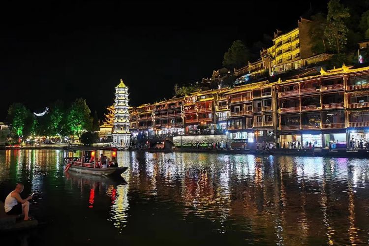 乘车(车程约3小时)赴美小城【凤凰古城】(接驳车赠送;注:凤凰古城不含九景门票,若因政府政策性变化,若需购票敬请自理)古城依山伴水,人杰地灵,沱江穿城而过,民族氛围浓厚,名胜古迹甚多;晚餐后欣赏凤凰古城别具一格的醉美夜景,观北门古城楼、青石板街、东门古码头、沱江两岸的吊脚楼,别有一番韵味。晚上夜游凤凰古城,于沱江边小酒吧落座,欣赏沱江两岸醉人【凤凰夜景】。夜幕降临,华灯初上,凤凰古城就会被五彩斑谰的灯火装扮得分外妖娆,分外漂亮。