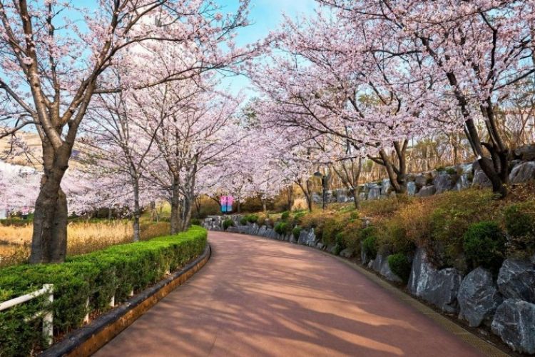 【南川洞樱花路】位于韩国釜山广域市水营区川南洞,广安海边路一带,在广安里与庆星大学附近,处于富人住宅区内。道路两边种满了樱花树,樱花道由南至北,将社区分成两侧。路口处有一座废弃的游乐场,增添了复古的氛围。