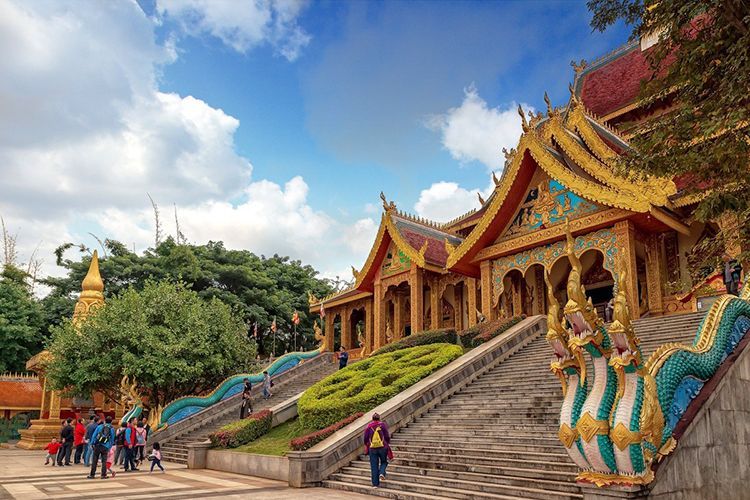 下午:参观西双版纳傣王的皇家寺院——【勐泐文化旅游区】(含单程电瓶车 40 元/人)佛寺是在古 代傣王朝的皇家寺院“景飘佛寺”的原址上修建的 ,以佛祖释迦牟尼的生平及佛寺活动为主线 ,九龙 浴佛、景飘大殿、神石、国殿、吉祥大佛等有 500 多座佛寺、200 多座佛塔。而勐泐大佛寺是所有佛 寺中大的 ,地位也是是至高无上的,是傣家人心目中的圣地 ,成为世界南传佛教的文化中心。根据 时间可观千只孔雀放飞盛景 ,参与傣家泼水活动祈福“泼湿一身 ,幸福终身”