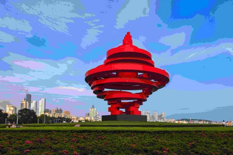【五四广场】打卡地标性建筑,因纪念青岛作为“五四运动”导火索而得名,火红色雕塑是以旋转腾空的“风”为造型,寓意青岛与五四运动的渊源。东临碧波荡漾的浮山湾,西倚现代都市楼群,以“五四运动”为名,承载着厚重的历史记忆。广场核心矗立着标志性雕塑“五月的风”,其火红的螺旋造型如升腾的烈焰,既象征着民族觉醒的力量,又仿佛海风卷起的浪潮,与不远处的大海遥相呼应。
