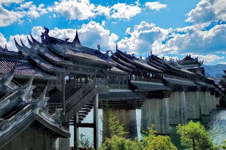 经典村落之一,由八个原生态侗族村寨连片组成,程阳风雨桥、鼓楼、吊脚楼依山傍水,春日牵牛花花海盛放,景致绝美。